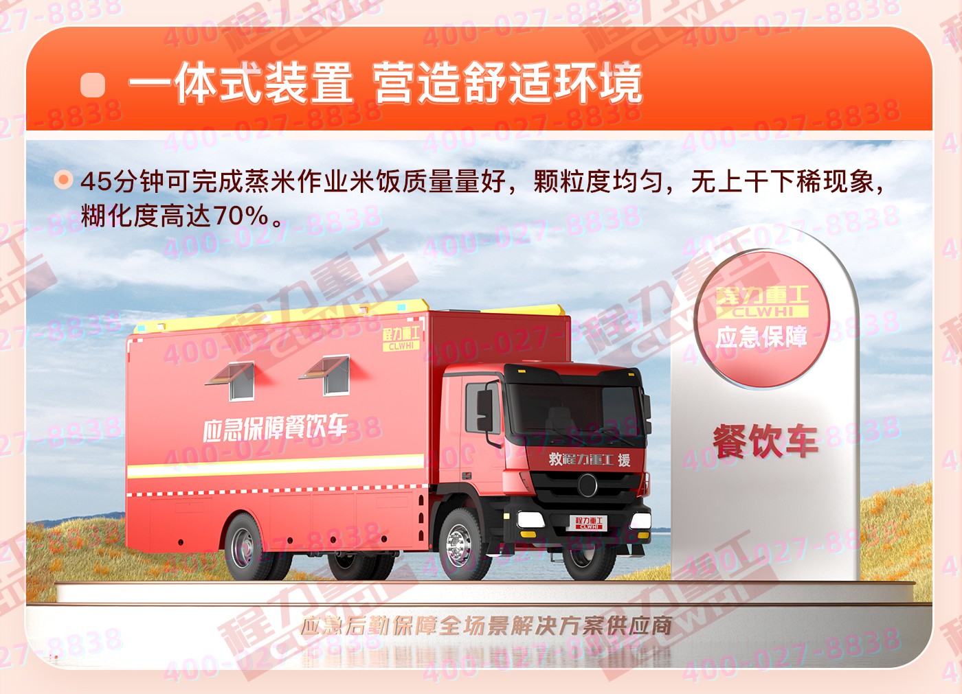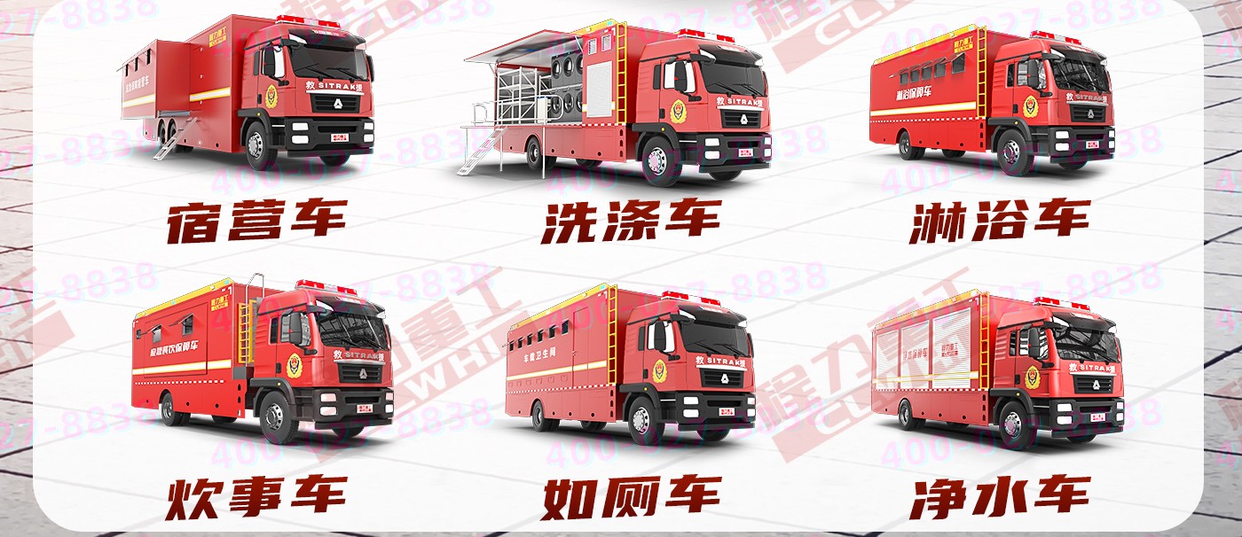 重汽HOWO炊事車:中國重型汽車集團原廠重汽豪沃6*6越野底盤,三軸5200+1400mm軸距,9726ML排量,280馬力。