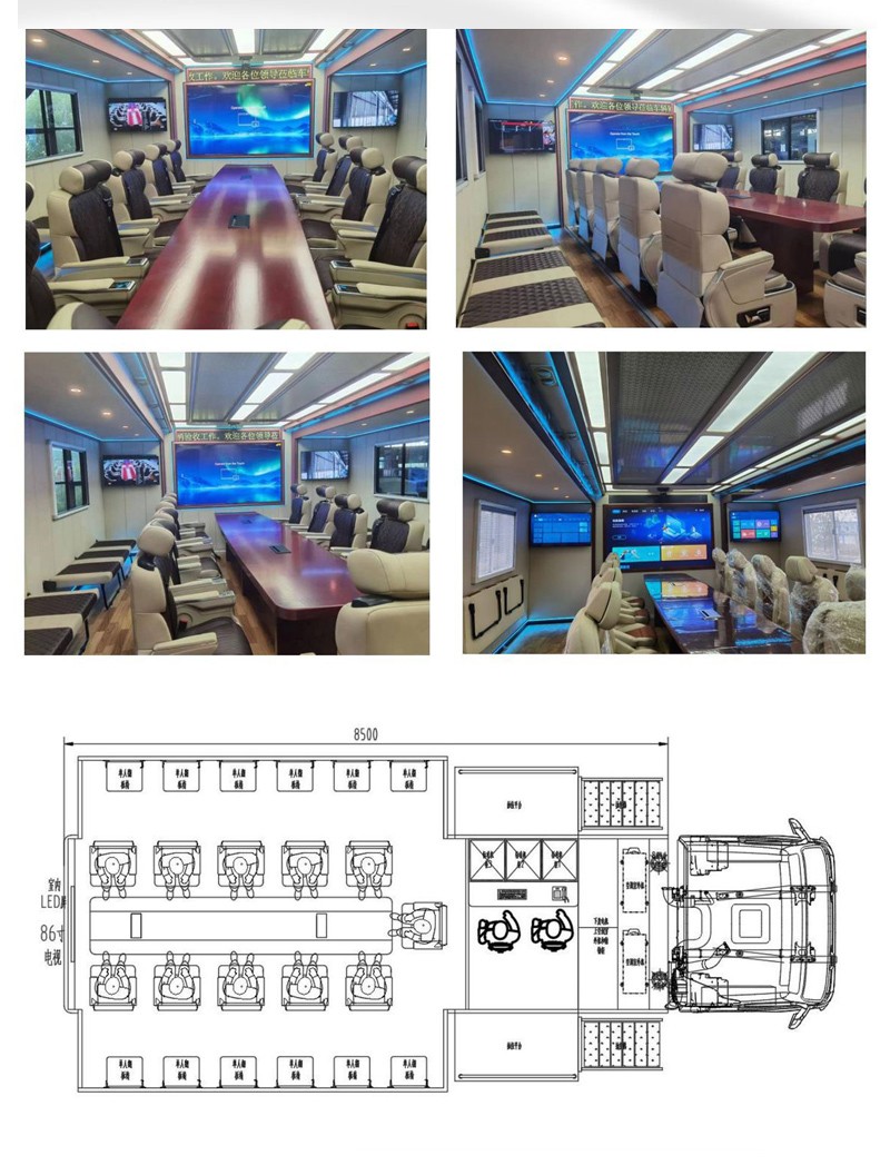 車載衛(wèi)星通信設(shè)備、無線通信系統(tǒng)、車內(nèi)辦公、供電及配套系統(tǒng)等。